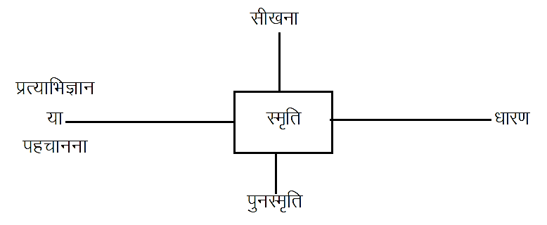 स्मृति Single जटिल मानसिक प्रक्रिया है। इस प्रकार का विश्लेषण Reseller जाए तो इसमें चार प्रमुख खण्ड सन्निहित है –